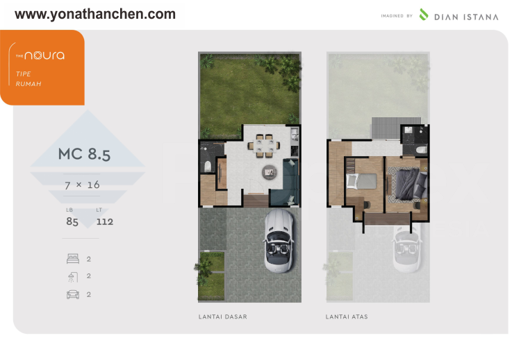 Unit ini dirancang dengan konsep arsitektur kontemporer yang memadukan estetika modern, kenyamanan ruang, serta tata letak fungsional. Dengan luas bangunan 85 m² di atas tanah 112 m², rumah ini menghadirkan ruang yang cukup lega untuk tumbuh bersama keluarga.