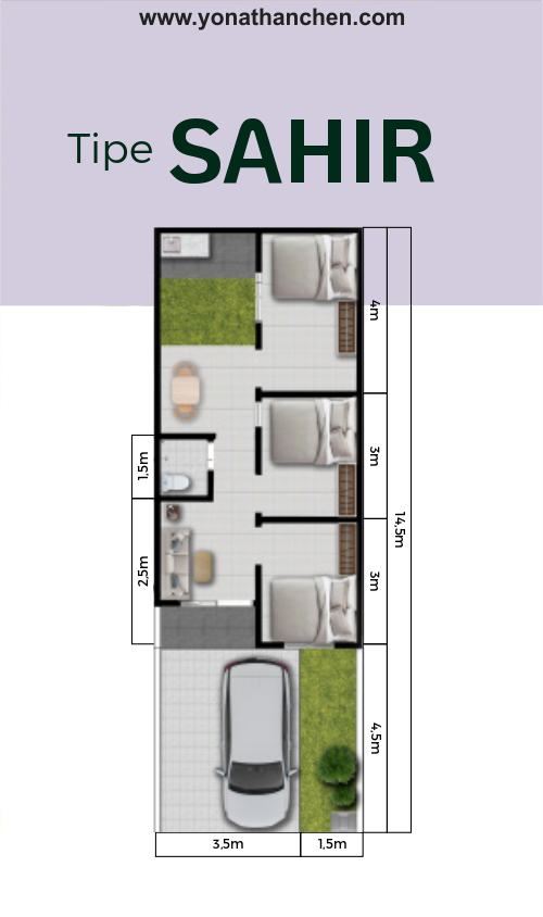 Sahir | 72,5 m² | 40 m² | 3 | 1 | 1 | Keluarga muda, pasangan baru |