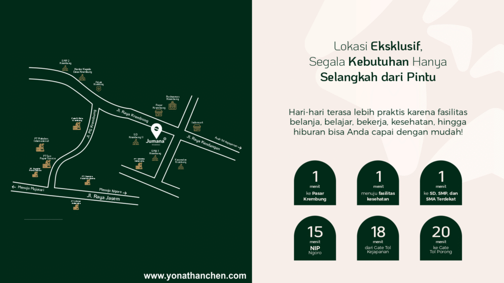 Jumana Residence menghadirkan kenyamanan hunian keluarga dan peluang bisnis strategis di jantung Krembung, Sidoarjo.