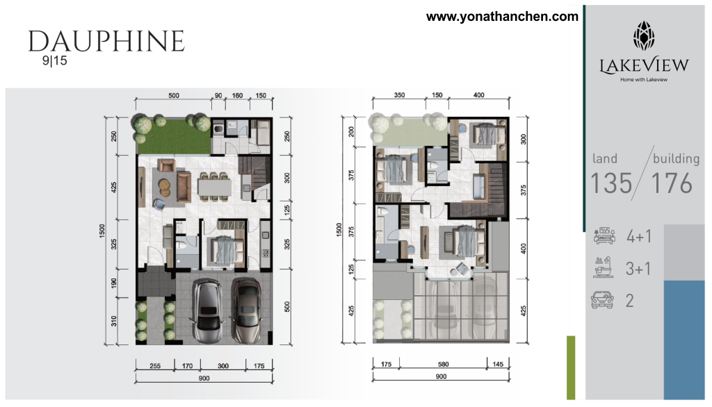 Lakeview Citra Garden Sidoarjo Tipe Dauphine adalah puncak dari hunian premium di kawasan Sidoarjo. Dengan luas tanah 135 m², bangunan 176 m², 5 kamar tidur (4+1), dan 4 kamar mandi (3+1), rumah ini mampu mengakomodasi keluarga besar sekaligus memberikan ruang privat yang nyaman. Keunggulan lain seperti pemandangan danau, lapangan basket, smart home system, kaca Low-E, charging station mobil listrik, dan keamanan berlapis menjadikannya investasi jangka panjang yang sangat menarik.
